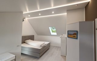 Dazu werden entweder kleine LED-Spots auf die Spanndecke aufgeklebt oder Schraubleuchten in die Decke eingelassen. Solche Lichteffekte sorgen für zusätzliches Ambiente und geben dem Raum eine persönliche Note.